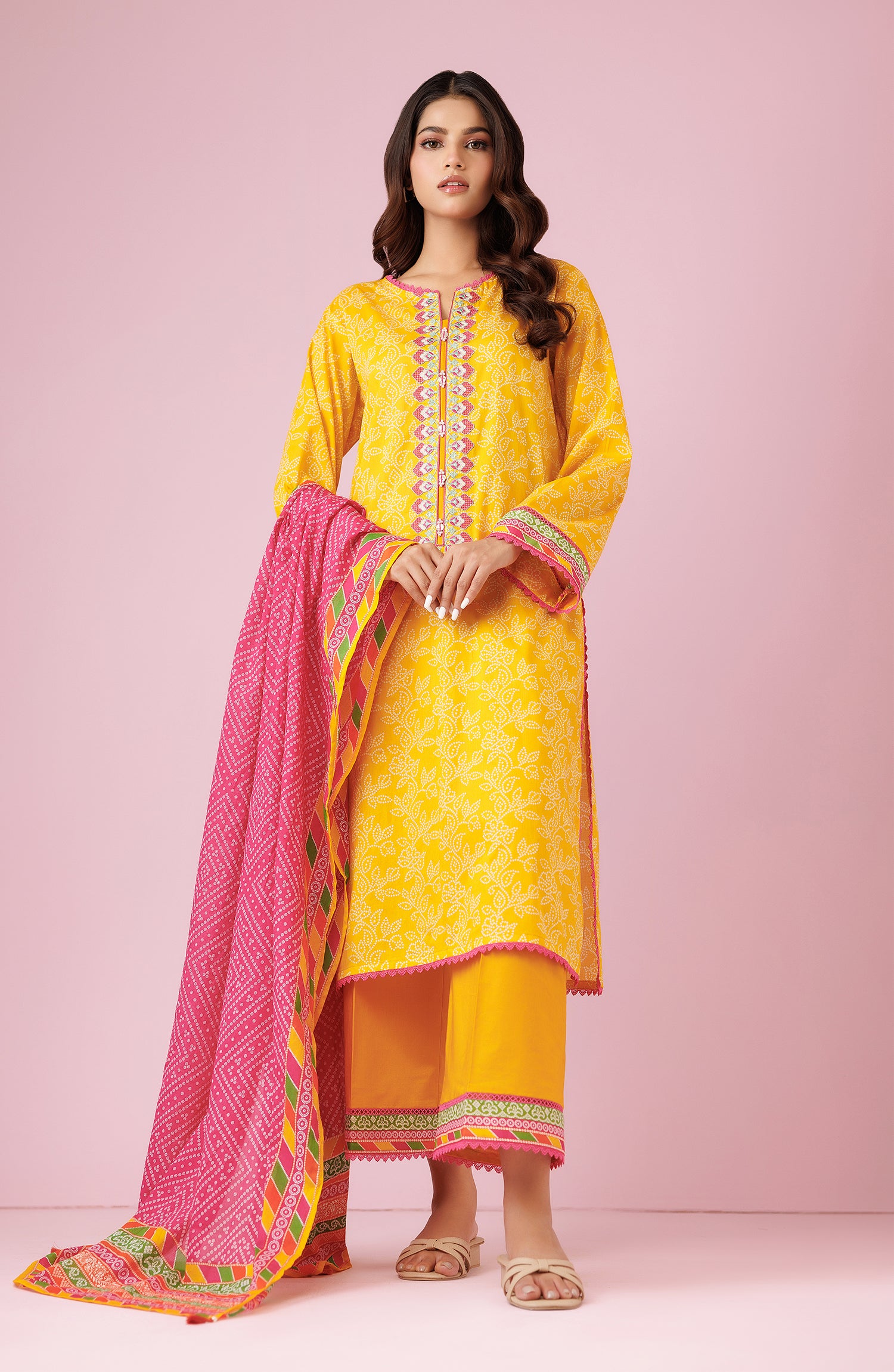 Do you want to see how traditional outfits evolved with time? Explore Orient 3-piece lawn suits with lawn dupatta, which are the quintessential example of fashion evolution. This ensemble, you know, carries trousers, a shirt, and a dupatta. Trousers and shirts are elegant and versatile at the same time, but dupattas add a touch of traditional charm. That is the reason designers say the unstitched nature of suits assures you can modify the style to match modern aesthetics.