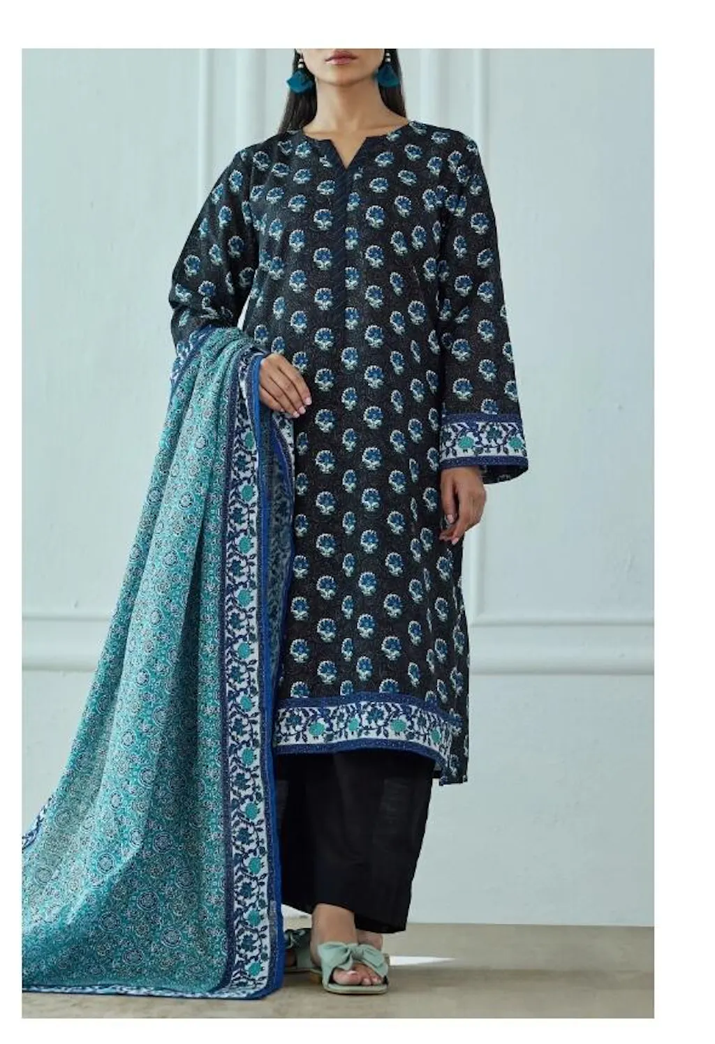 Unstitched | 3 Piece | Printed | Khaddar Shirt | OTL-25-439/U BLACK