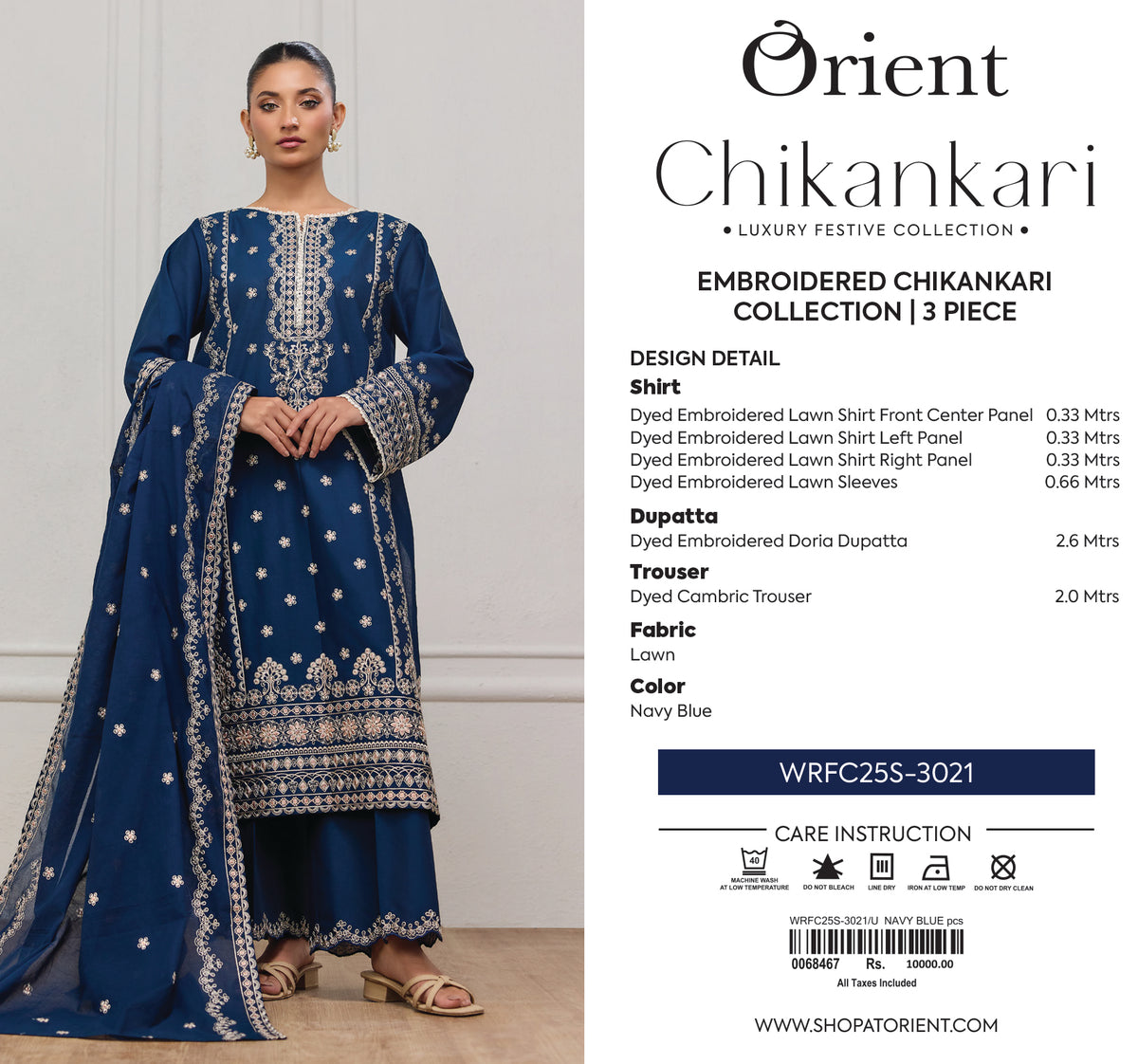Unstitched | 3 Piece | Embroidered | CHIKANKARI Shirt | WRFC25S-3021/U NAVY BLUE