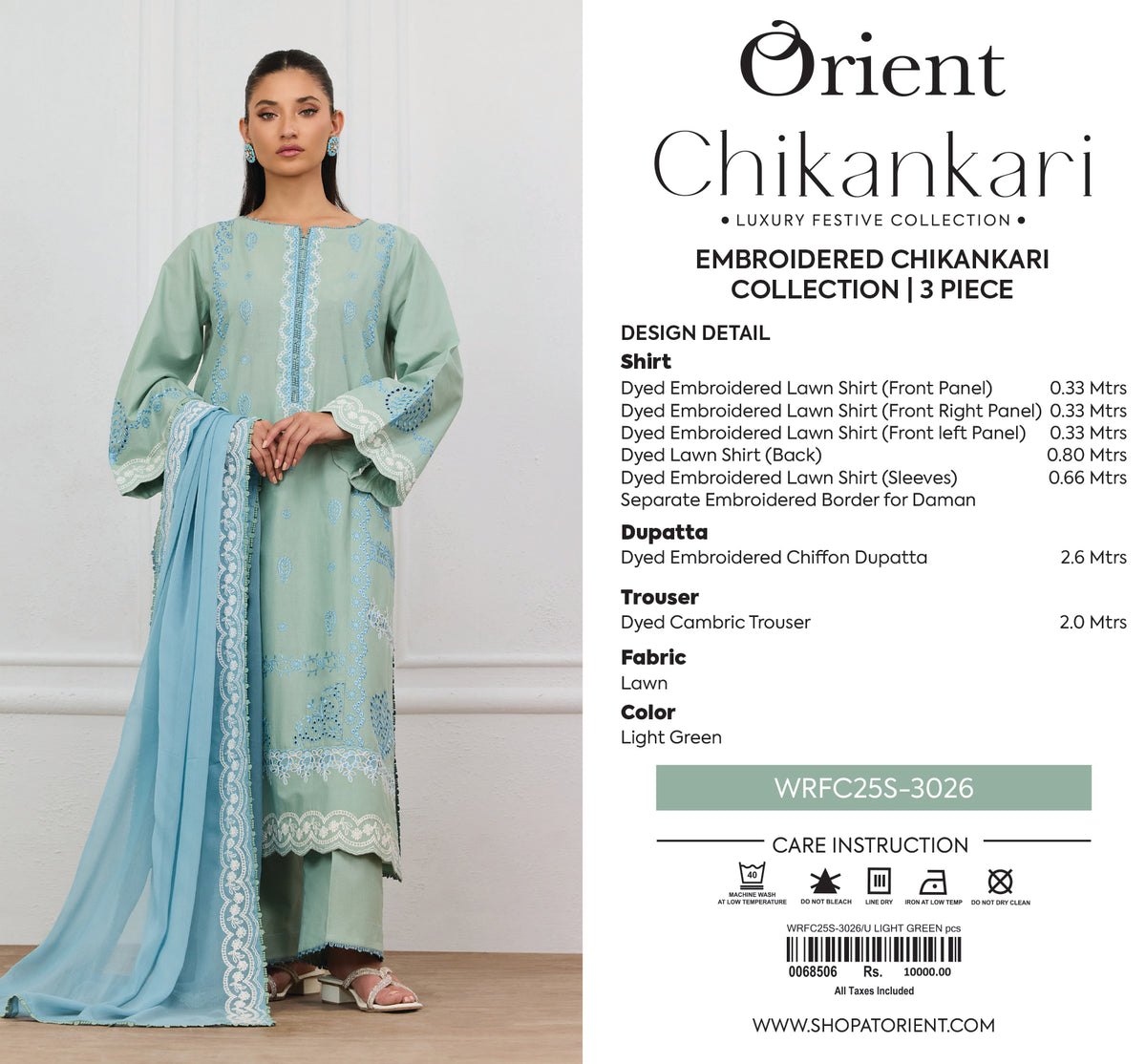 Unstitched | 3 Piece | Embroidered | CHIKANKARI Shirt | WRFC25S-3026/U LIGHT GREEN