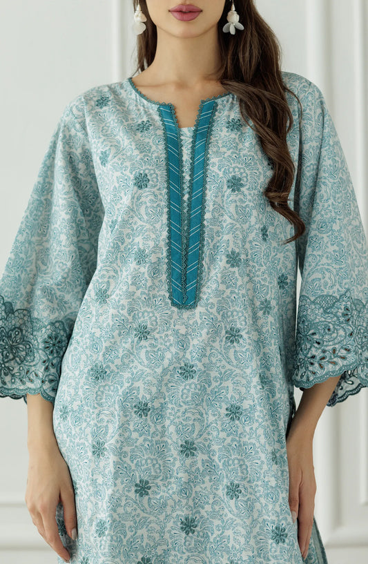- COLLAR EMBROIDERED NECKLINE WITH FRONT EMBELLISHMENT DETAILS ON Lawn JACQUARD SHIRT