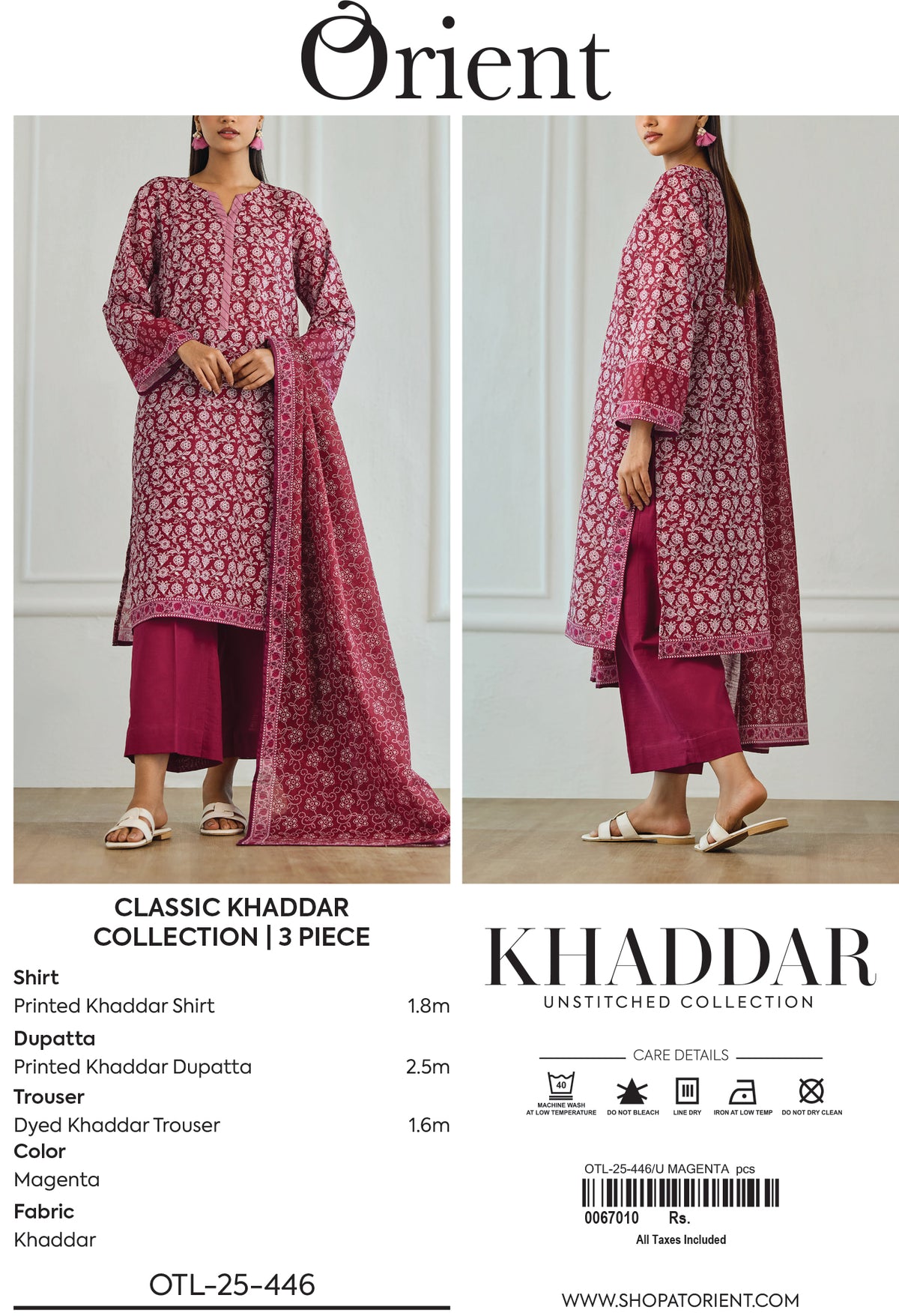 Unstitched | 3 Piece | Printed | Khaddar Shirt | OTL-25-446/U MAGENTA
