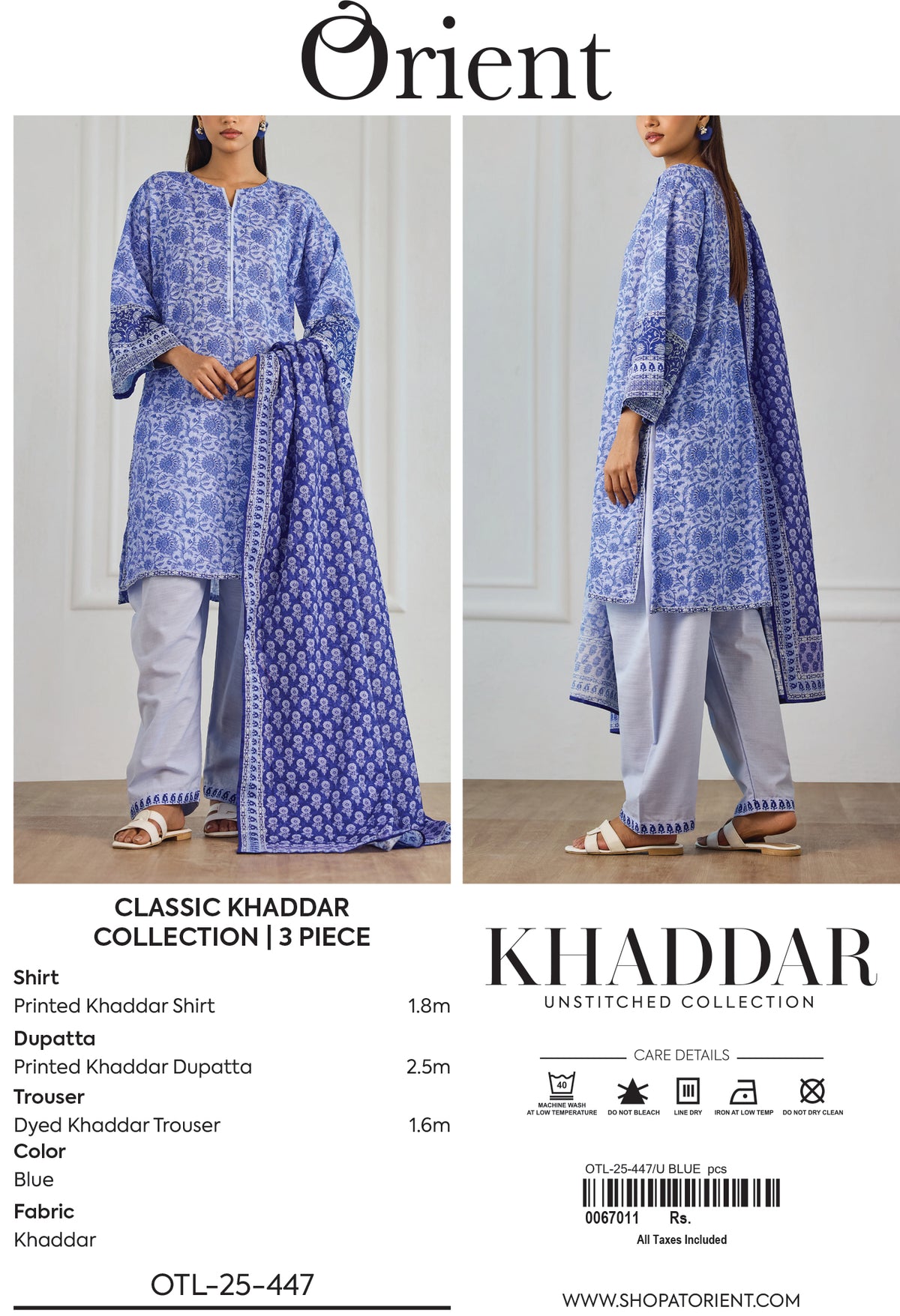 Unstitched | 3 Piece | Printed | Khaddar Shirt | OTL-25-447/U BLUE