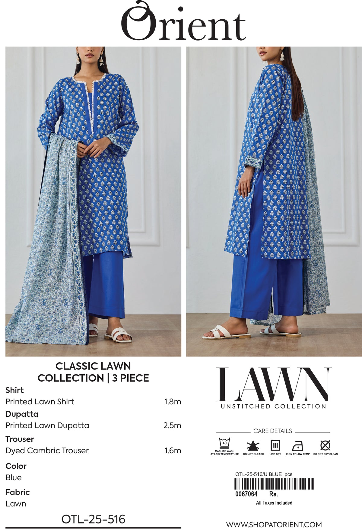 Unstitched | 3 Piece | Printed | Lawn Shirt | OTL-25-516/U BLUE