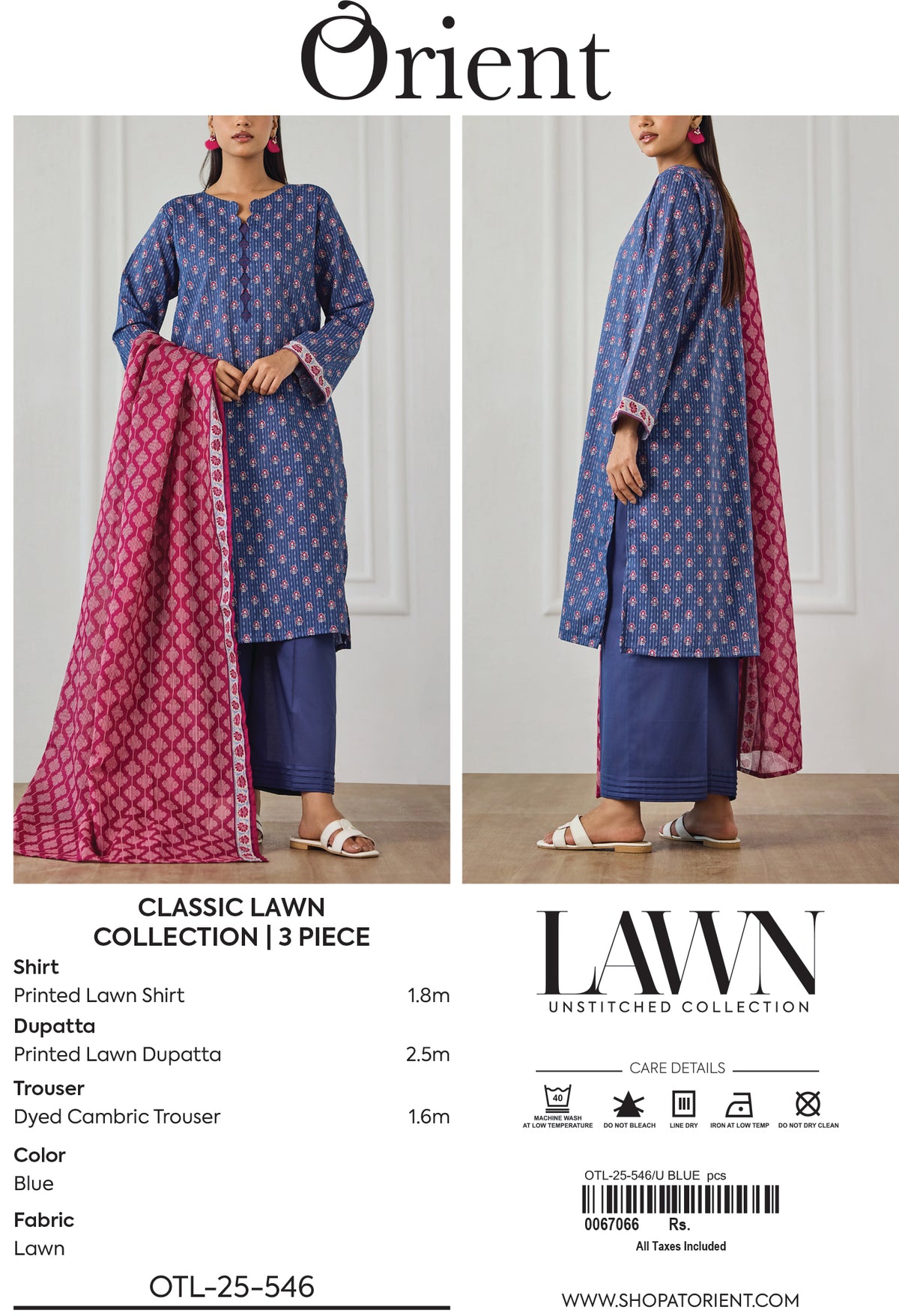 Unstitched | 3 Piece | Printed | Lawn Shirt | OTL-25-546/U BLUE