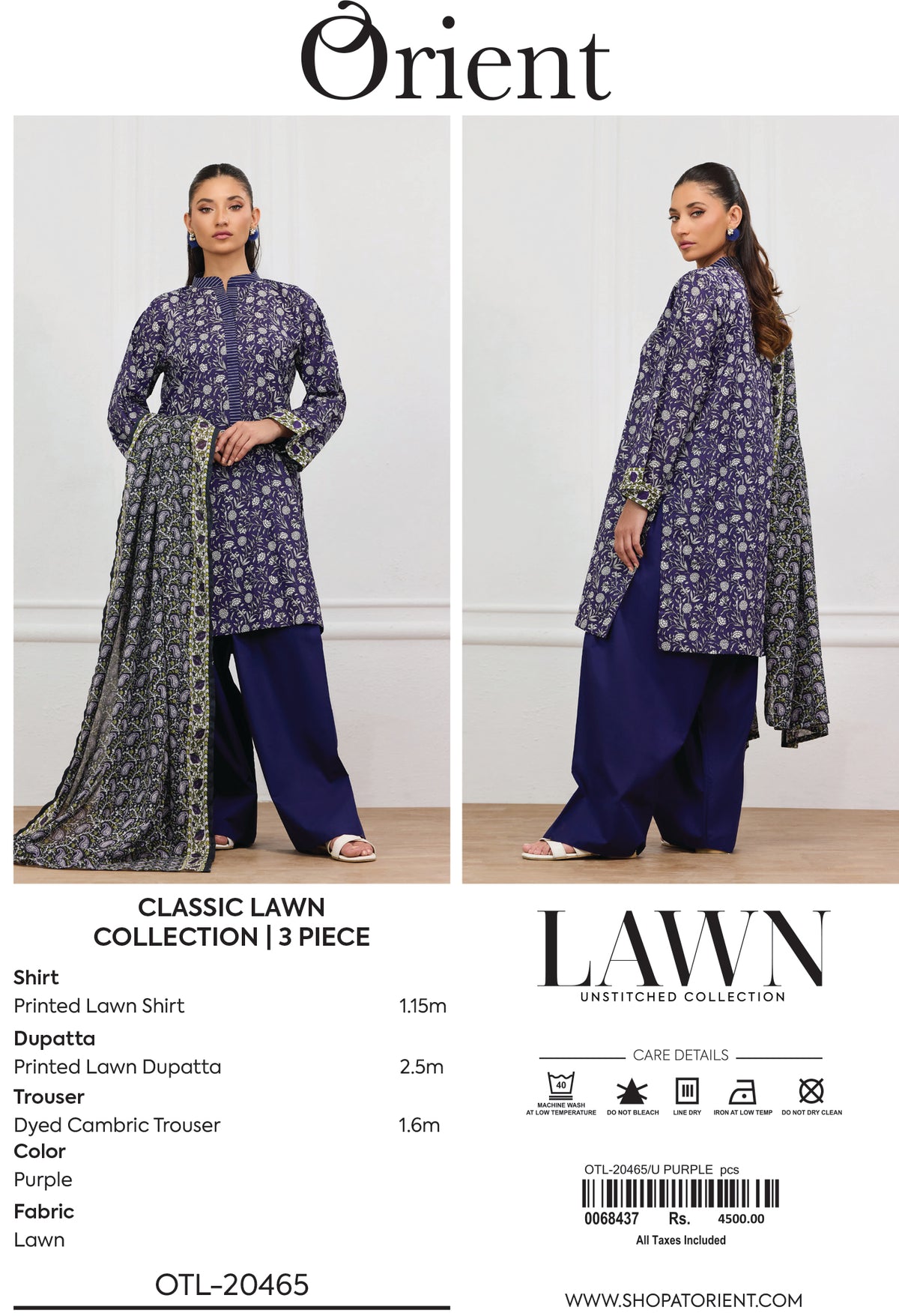Unstitched | 3 Piece | Printed | Lawn Shirt | OTL-20465/U PURPLE