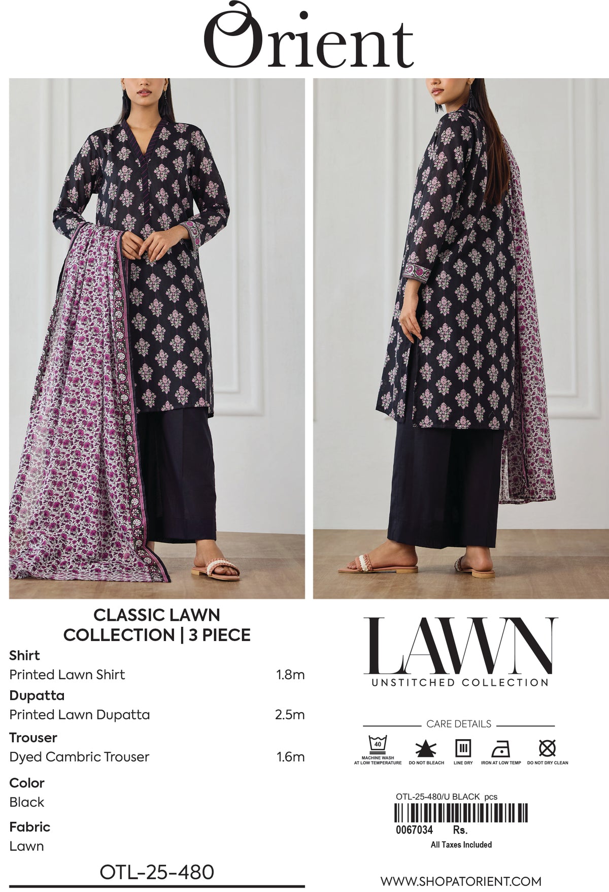 Unstitched | 3 Piece | Printed | Lawn Shirt | OTL-25-480/U BLACK