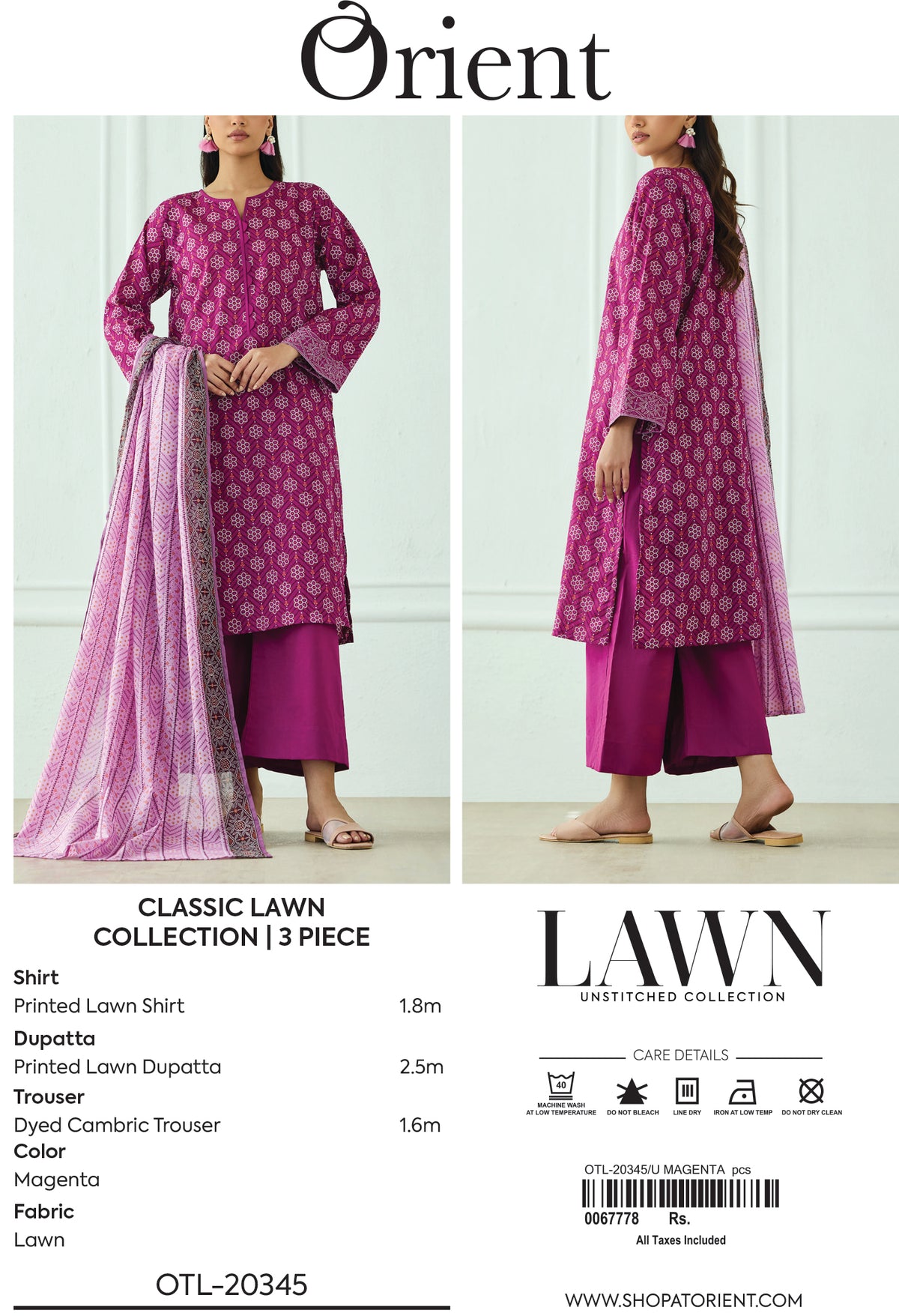 Unstitched | 3 Piece | Printed | Lawn Shirt | OTL-20345/U MAGENTA
