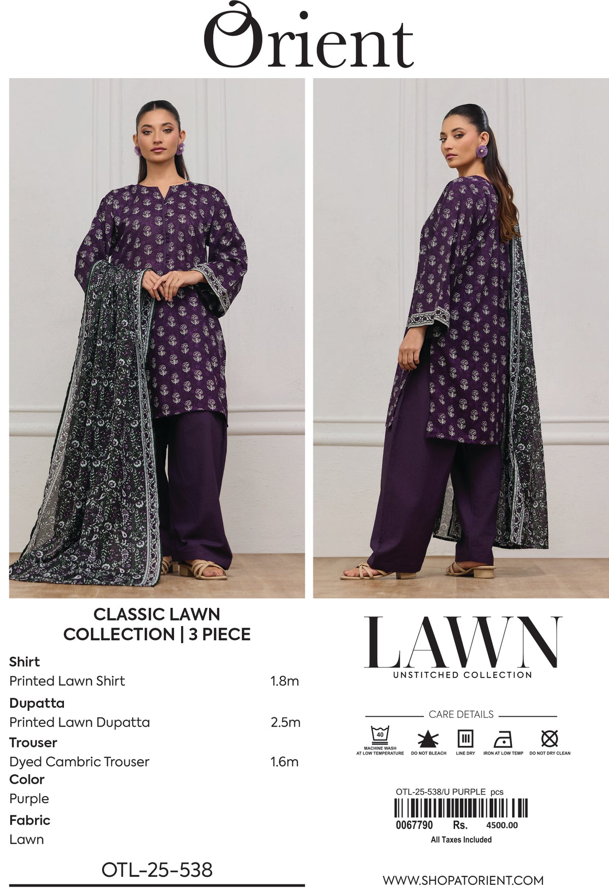 Unstitched | 3 Piece | Printed | Lawn Shirt | OTL-25-538/U PURPLE
