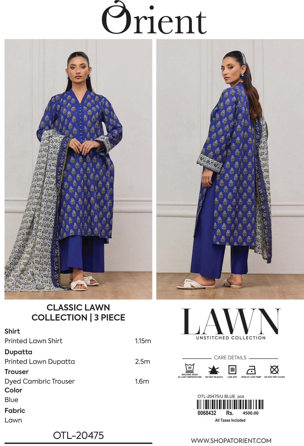 Unstitched | 3 Piece | Printed | Lawn Shirt | OTL-20475/U BLUE