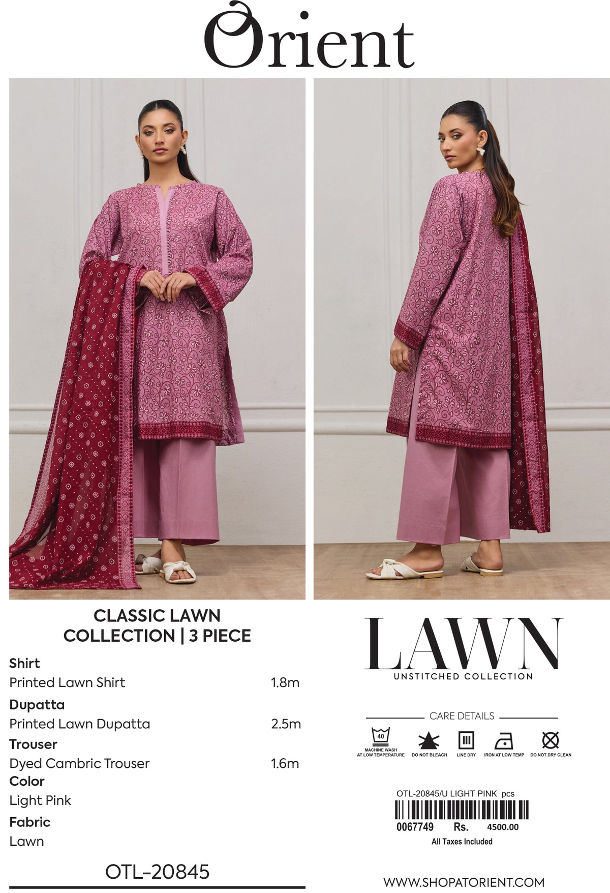 Unstitched | 3 Piece | Printed | Lawn Shirt | OTL-20845/U LIGHT PINK