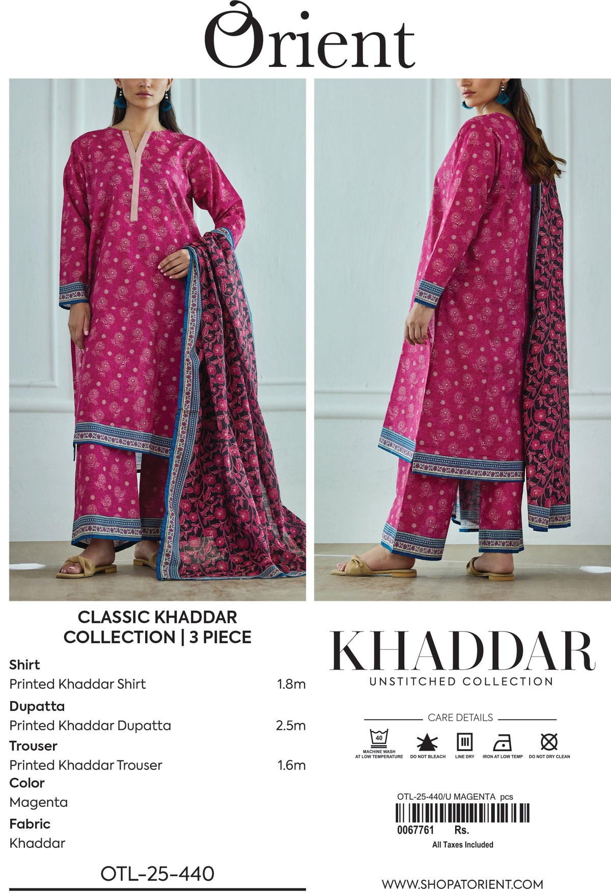 Unstitched | 3 Piece | Printed | Khaddar Shirt | OTL-25-440/U MAGENTA