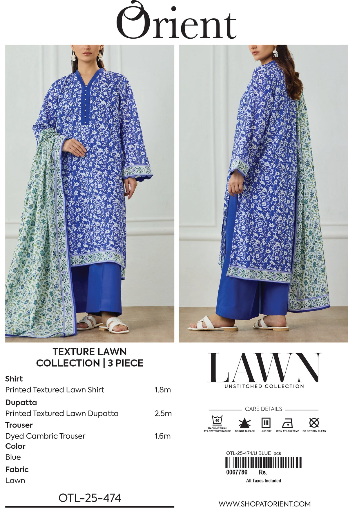 Unstitched | 3 Piece | Printed | Texture Lawn Shirt | OTL-25-474/U BLUE