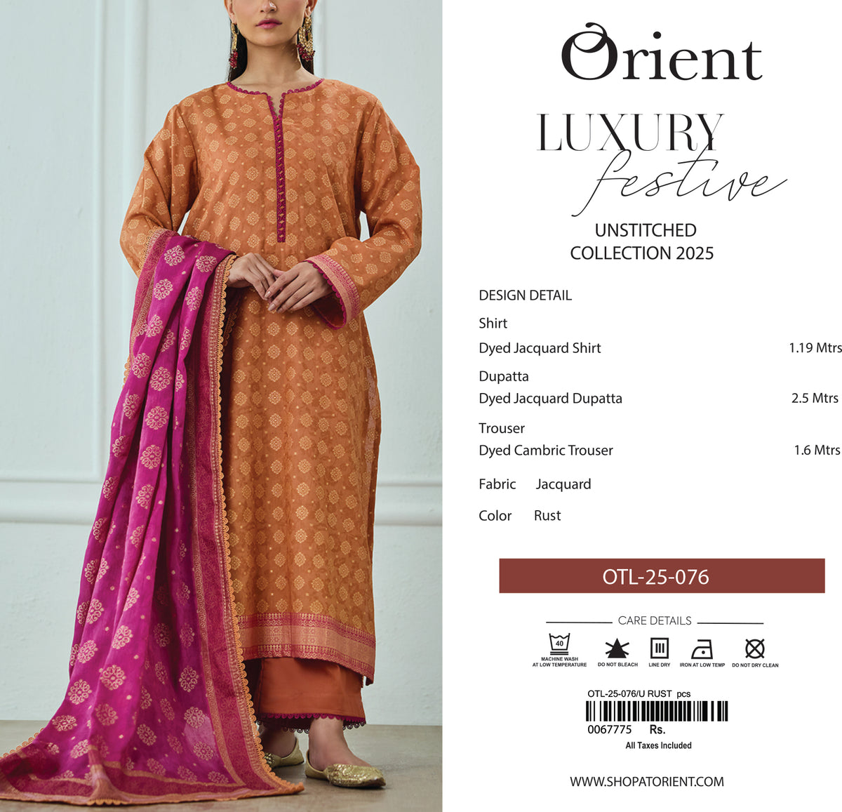 Unstitched | 3 Piece | Weaved | Jacquard Shirt | OTL-25-076/U RUST