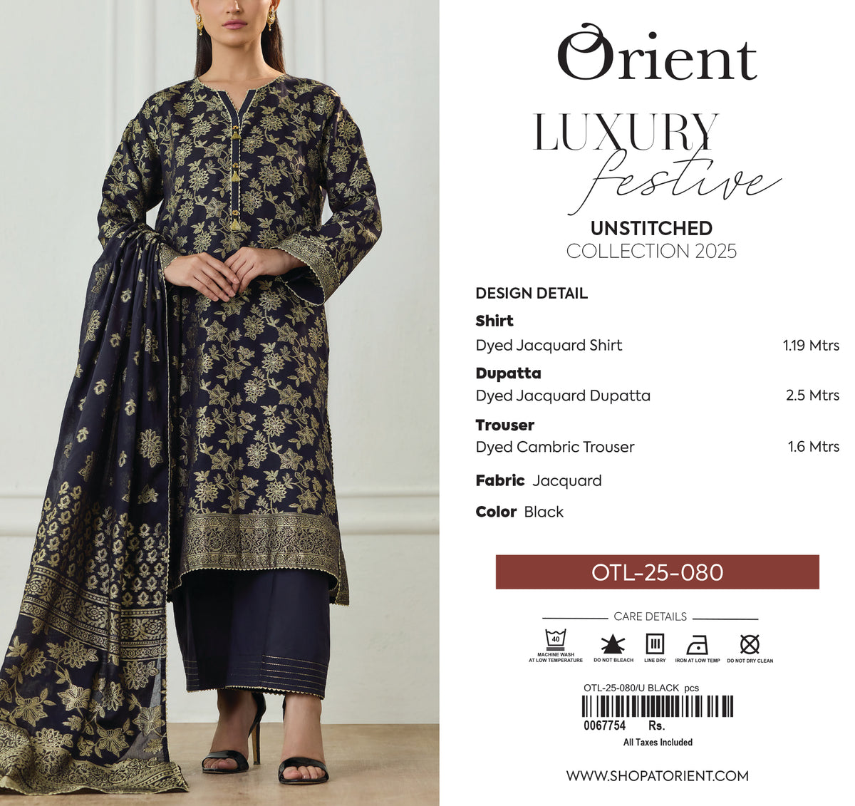 Unstitched | 3 Piece | Weaved | Jacquard Shirt | OTL-25-080/U BLACK