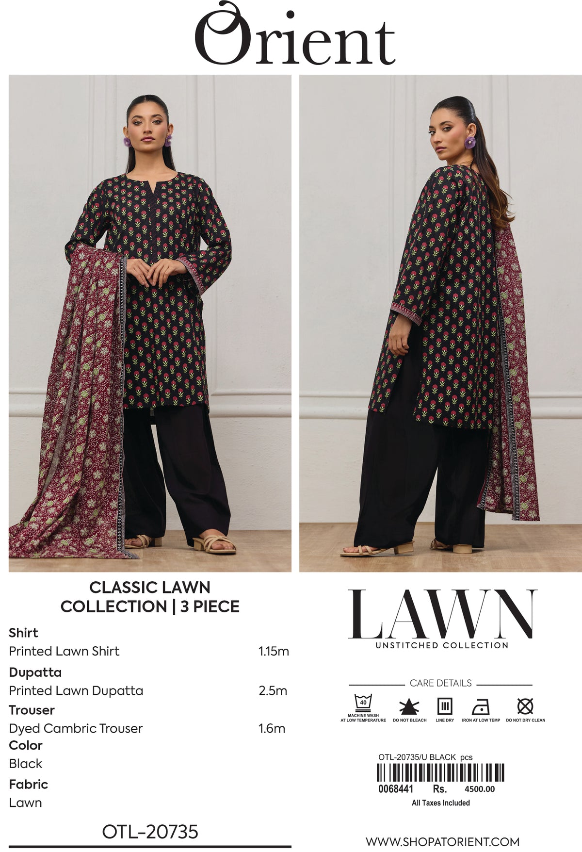 Unstitched | 3 Piece | Printed | Lawn Shirt | OTL-20735/U BLACK