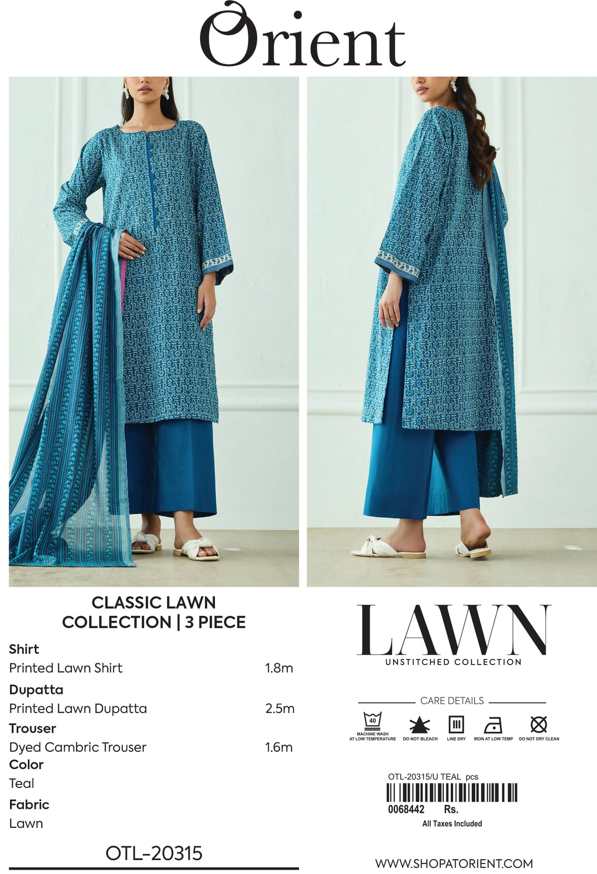 Unstitched | 3 Piece | Printed | Lawn Shirt | OTL-20315/U TEAL
