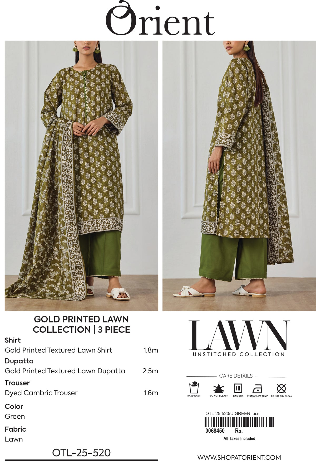 Unstitched | 3 Piece | Printed | Texture Lawn Shirt | OTL-25-520/U GREEN