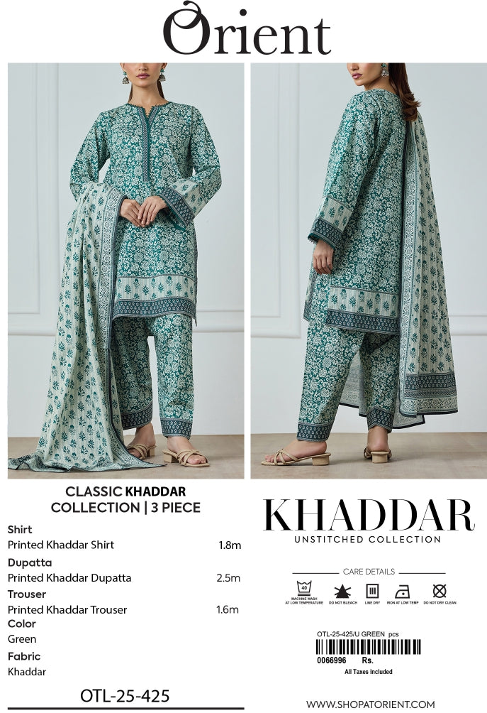 Unstitched | 3 Piece | Printed Khaddar | OTL-25-425