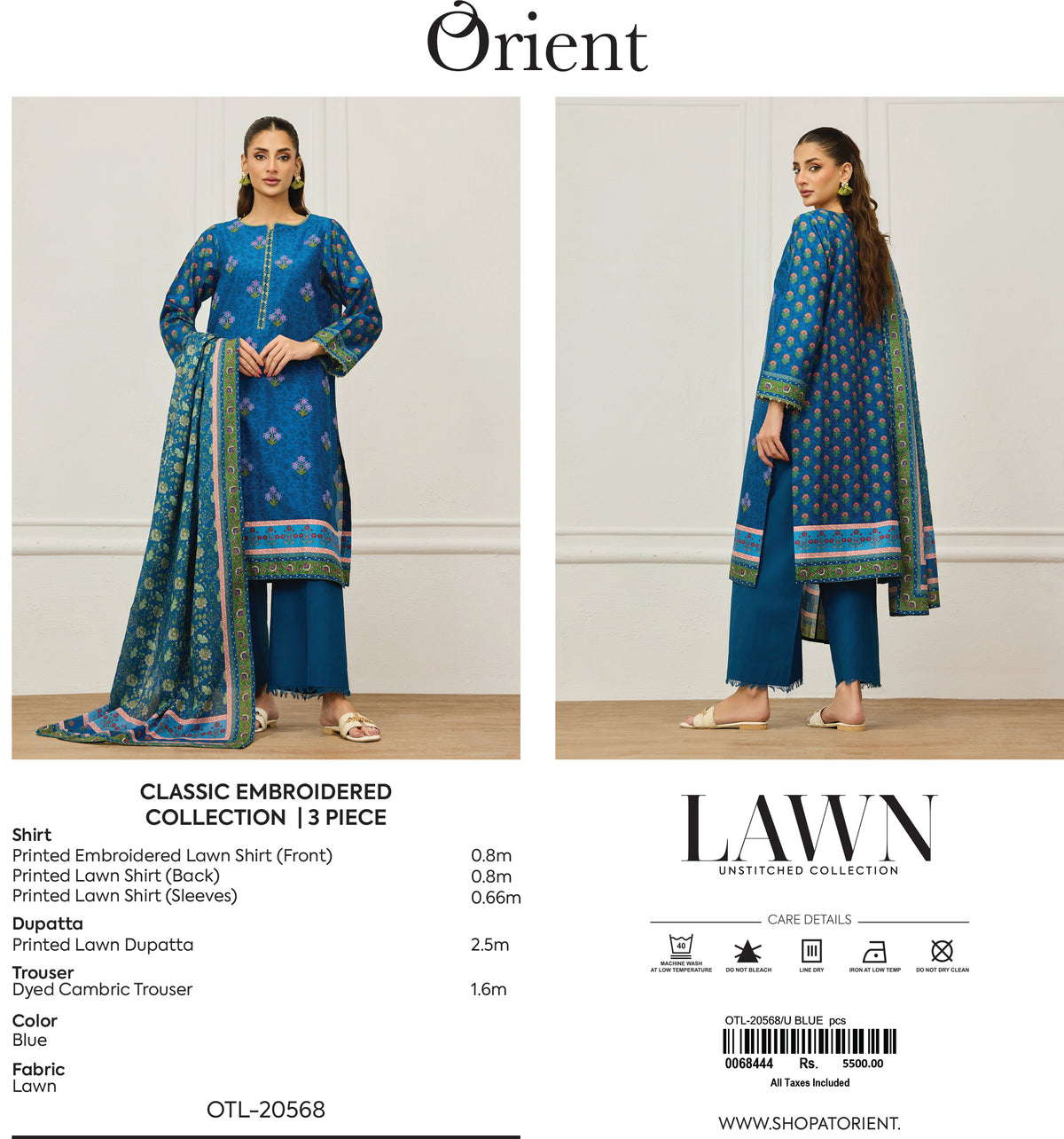 Unstitched | 3 Piece | Embroidered | Lawn Shirt | OTL-20568/U BLUE