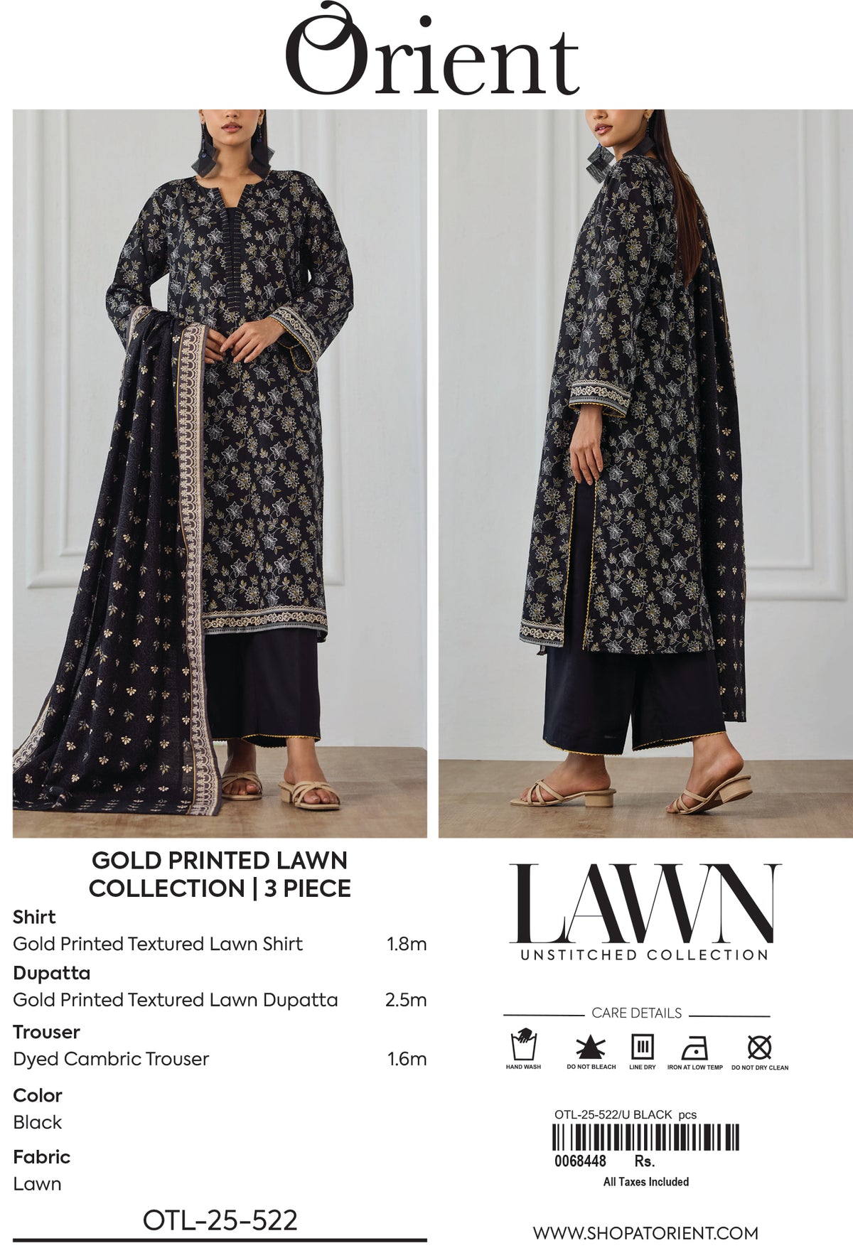Unstitched | 3 Piece | Printed | Texture Lawn Shirt | OTL-25-522/U BLACK