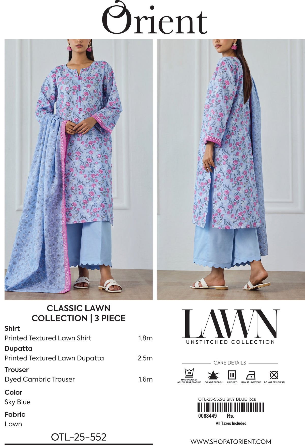 Unstitched | 3 Piece | Printed | Texture Lawn Shirt | OTL-25-552/U SKY BLUE