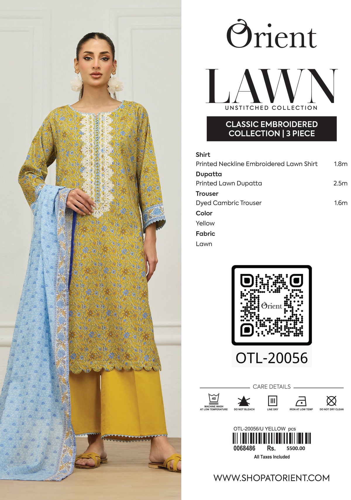 Unstitched | 3 Piece | Embroidered | Lawn Shirt | OTL-20056/U YELLOW