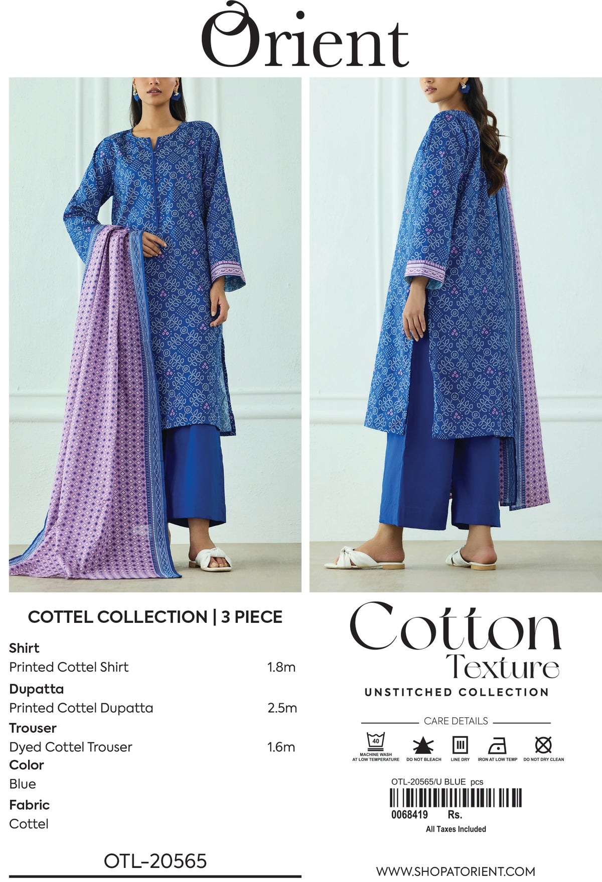 Unstitched | 3 Piece | Printed | Cottel Shirt | OTL-20565/U BLUE
