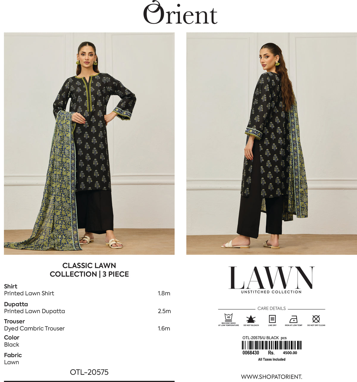 Unstitched | 3 Piece | Printed | Lawn Shirt | OTL-20575/U BLACK