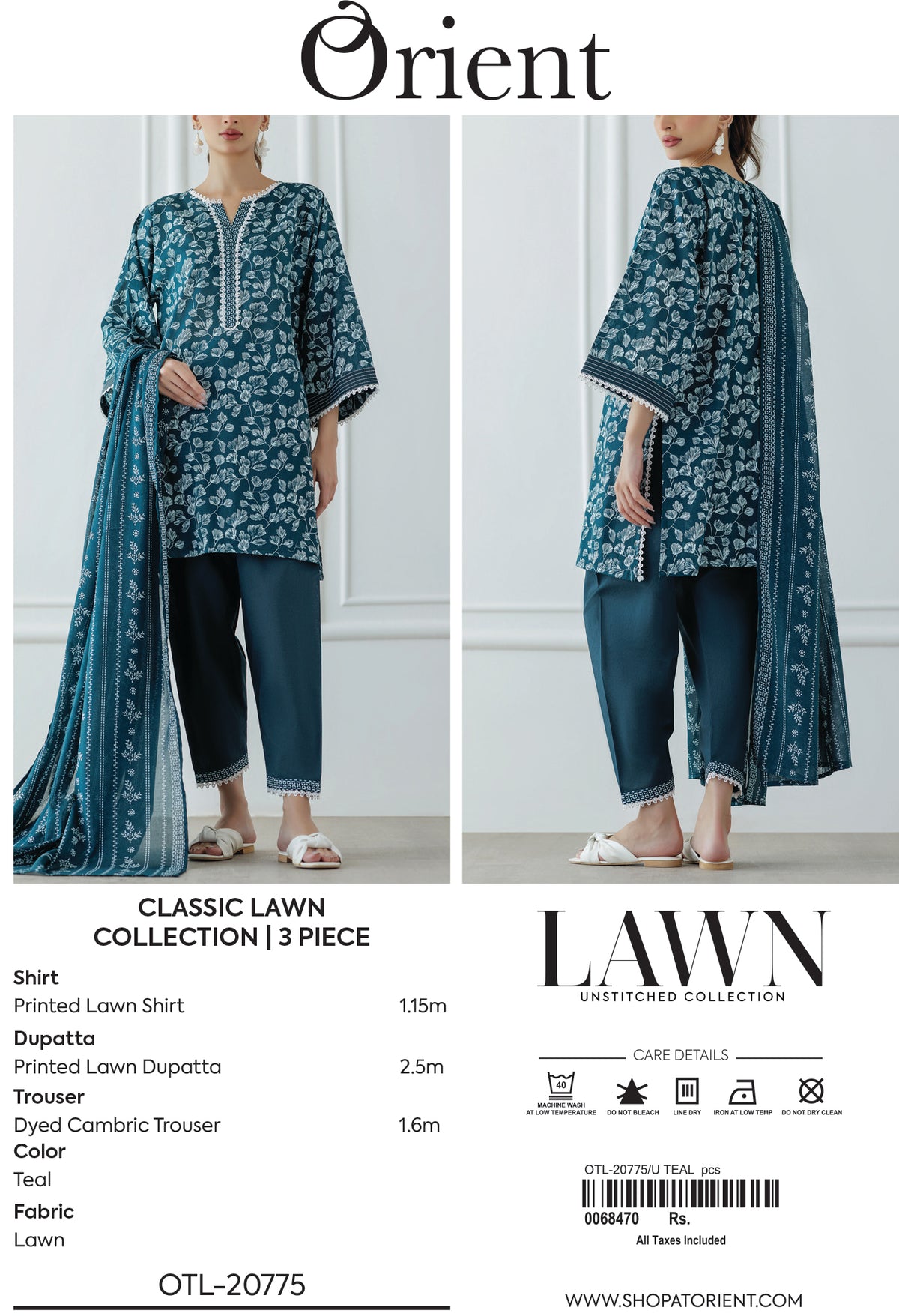 Unstitched | 3 Piece | Printed | Lawn Shirt | OTL-20775/U TEAL