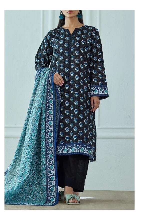 Unstitched Printed Lawn Jacquard Shirt Dupatta & Pant - 3 Piece - OTL-25-111