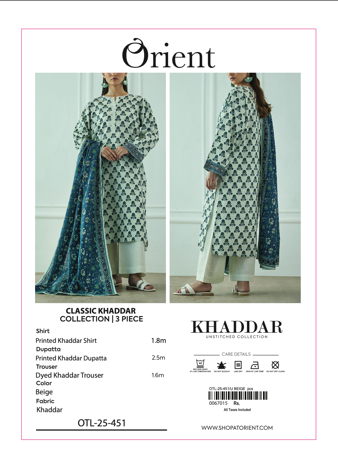 Unstitched | 3 Piece | Printed | Khaddar Shirt | OTL-25-451/U BEIGE