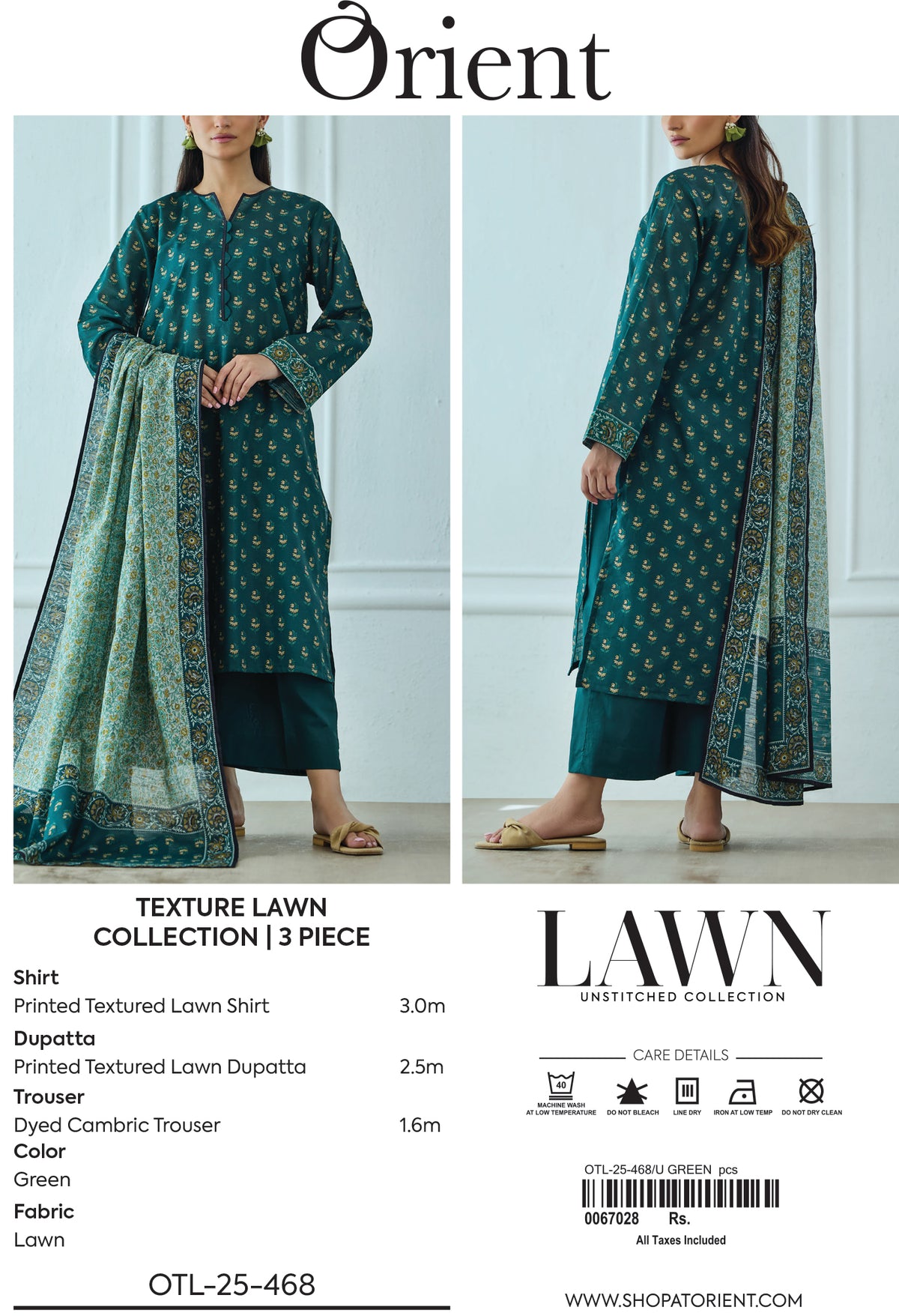 Unstitched | 3 Piece | Printed | Texture Lawn Shirt | OTL-25-468/U GREEN