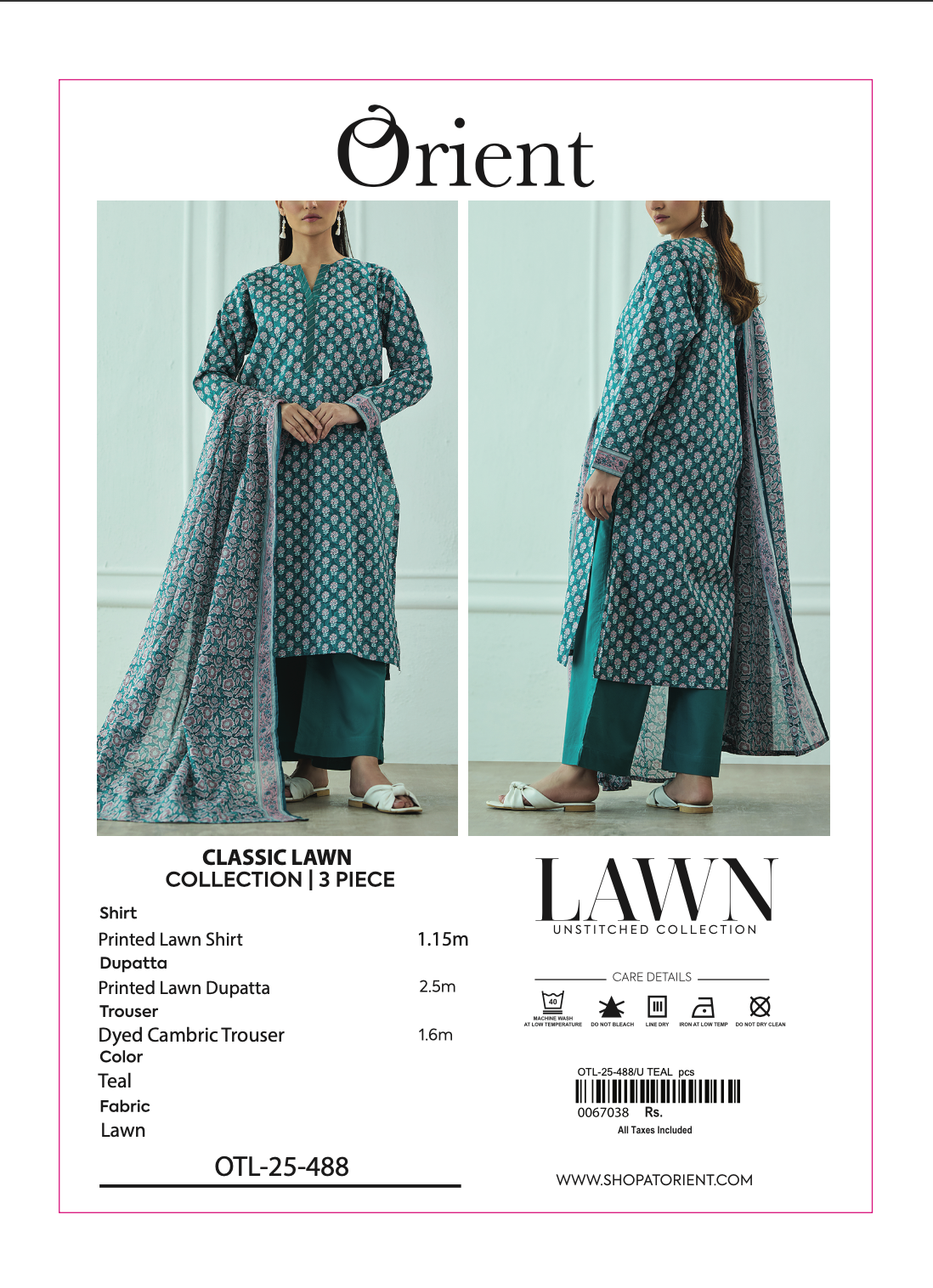 Unstitched | 3 Piece | Printed | Lawn Shirt | OTL-25-488/U TEAL