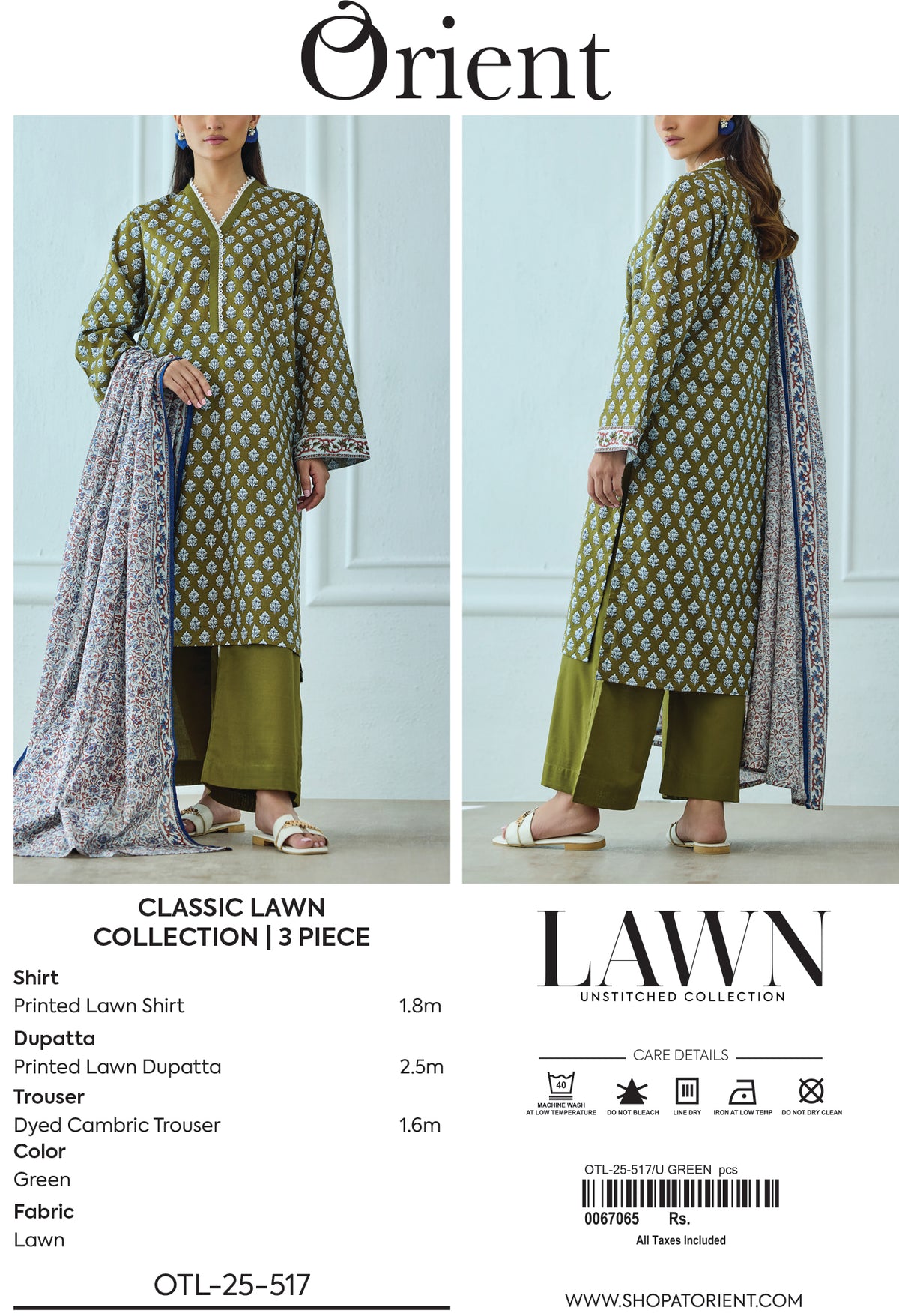 Unstitched | 3 Piece | Printed | Lawn Shirt | OTL-25-517/U GREEN