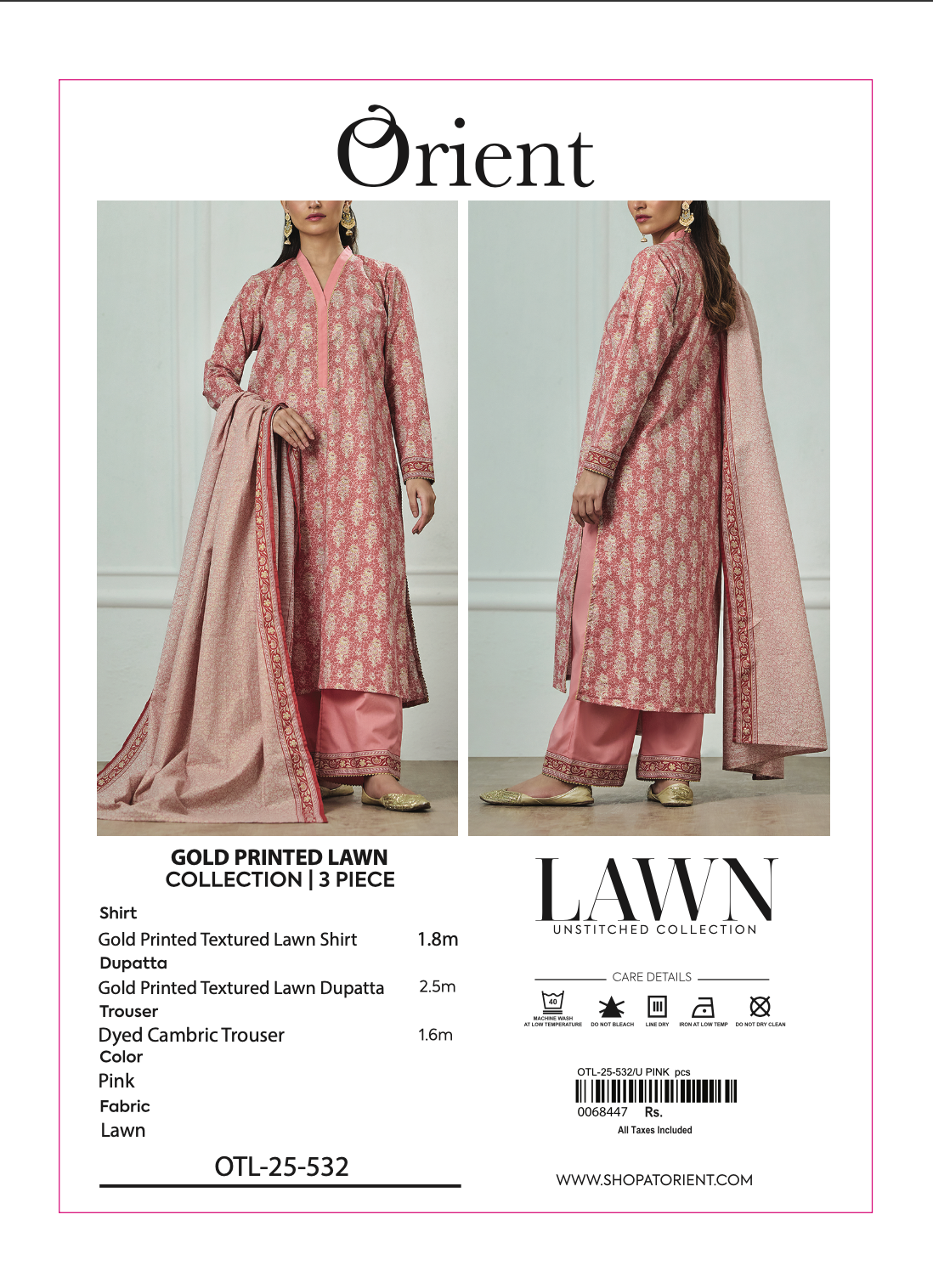 Unstitched | 3 Piece | Printed | Texture Lawn Shirt | OTL-25-532/U PINK
