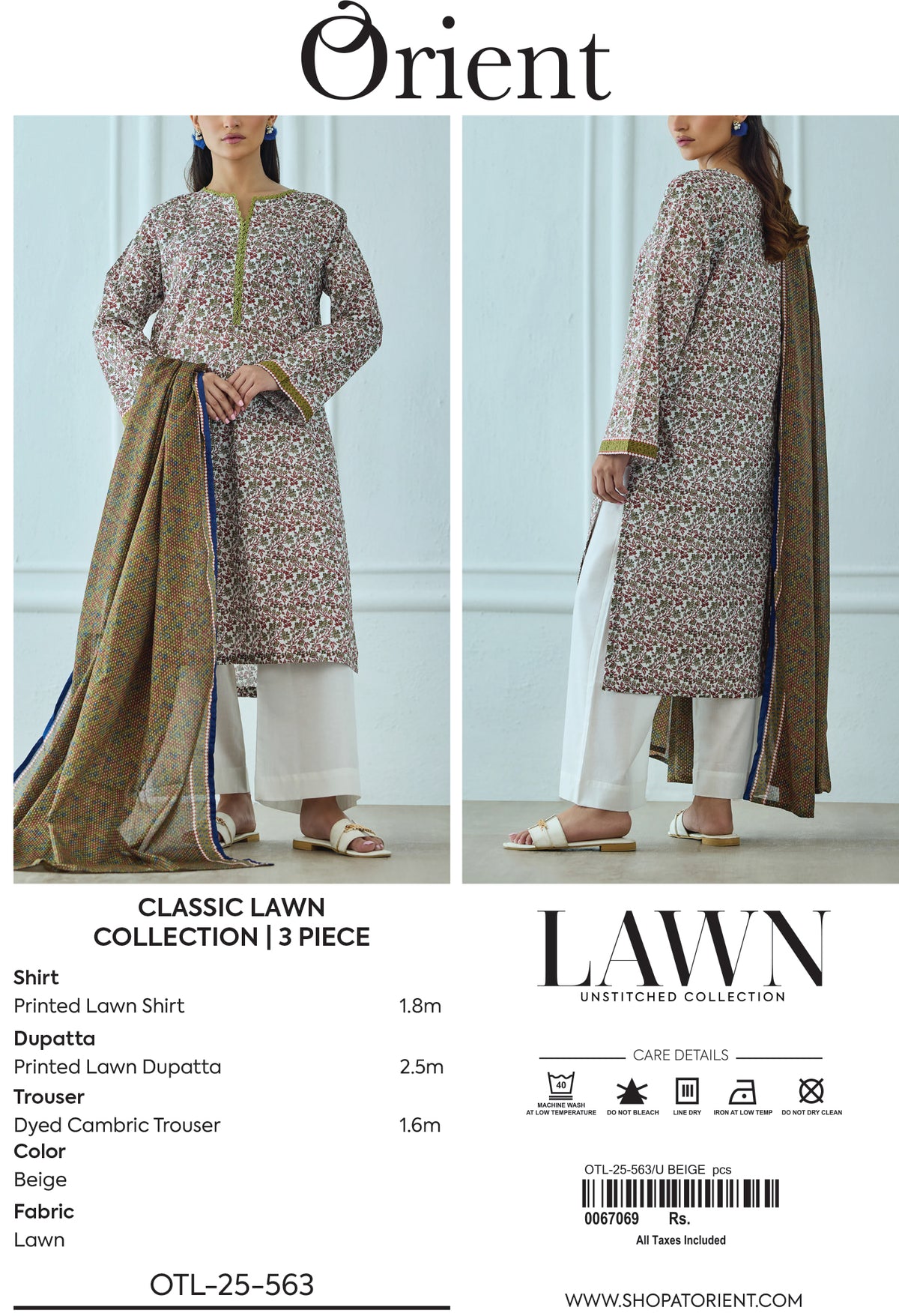 Unstitched | 3 Piece | Printed | Lawn Shirt | OTL-25-563/U BEIGE