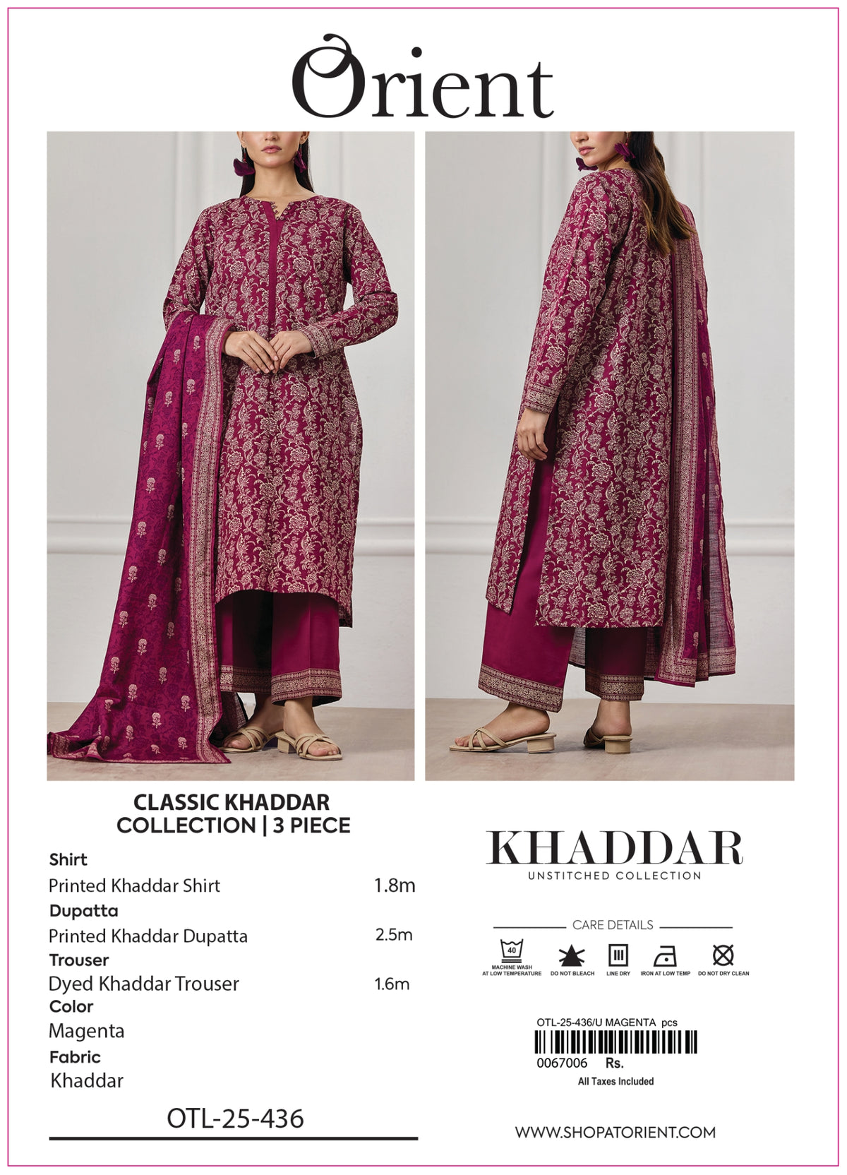 Unstitched | 3 Piece | Printed Khaddar | OTL-25-436